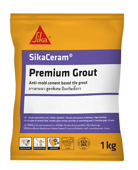SikaCeram Premium Grout กาวยาแนว ส่วนผสมเดียว ประกอบด้วยผงซีเมนต์ สารกันซึมและสารเติมแต่งชนิดพิเศษหลายชนิด สามารถป้องกันเชื้อรา แบคทีเรียและตะไคร่น้ำ อีกทั้งยังใช้เทคโนโลยีสีพิเศษเพื่อคงความสวยงามให้กับสียาแนวอีกด้วย